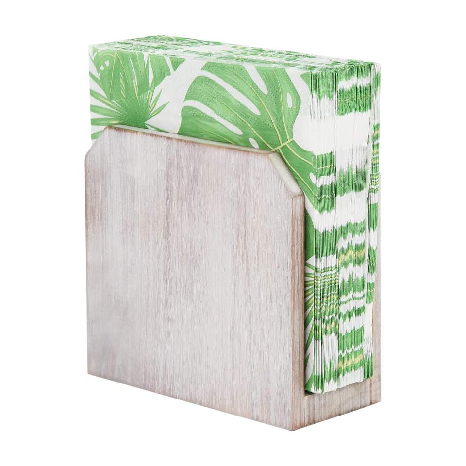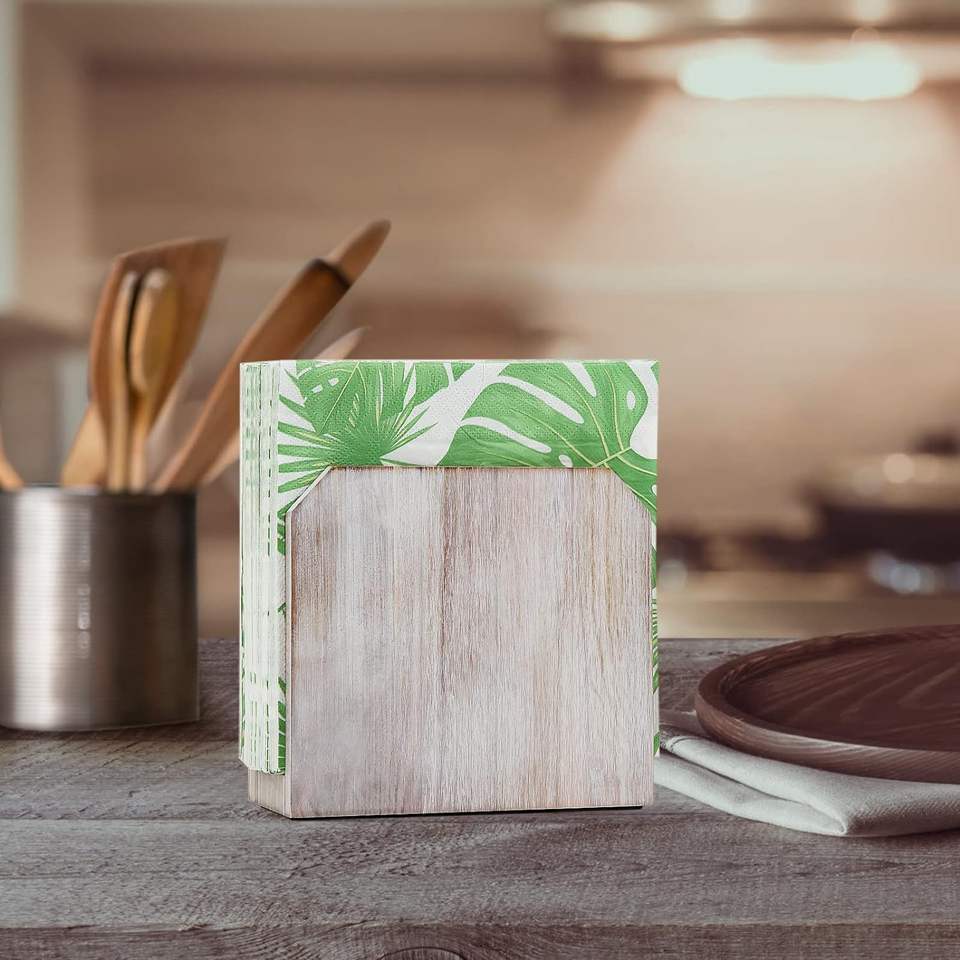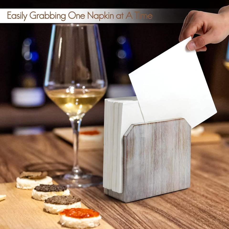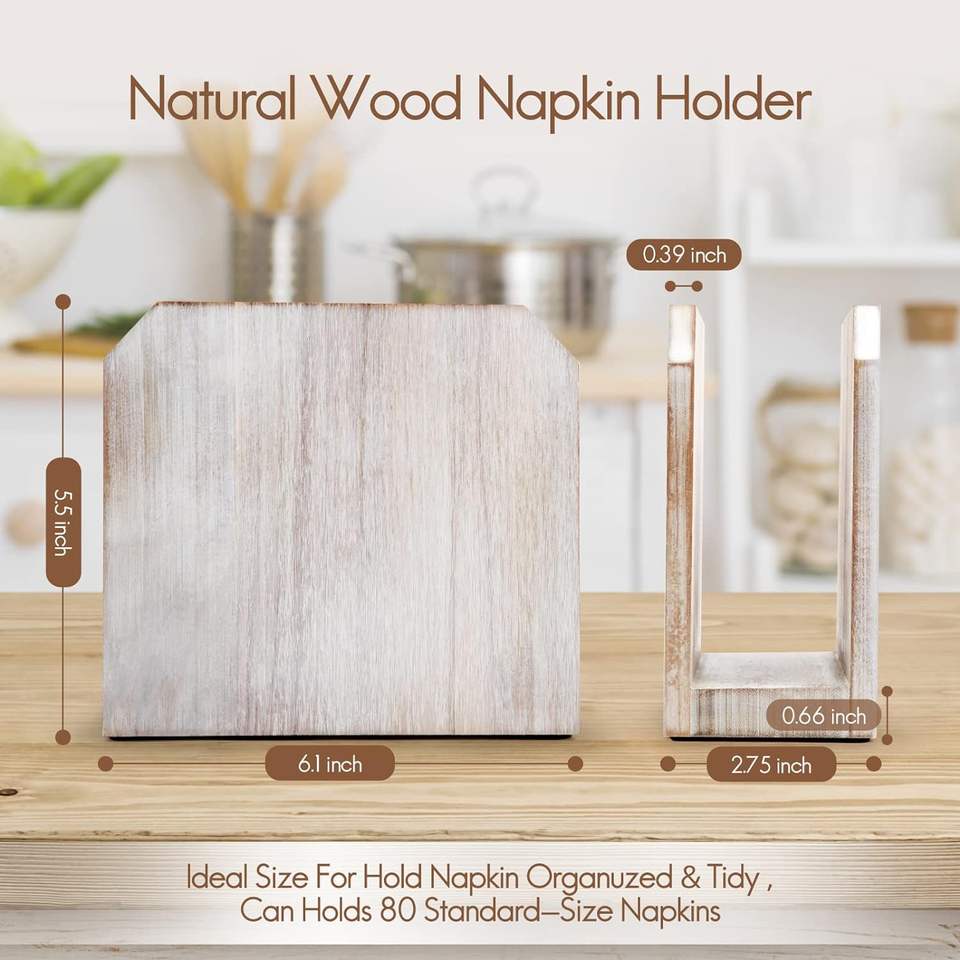 White Acacia Wood Napkin Holders Rustic Farmhouse Kitchen Dining Room Counter Top Decor for Paper Napkins