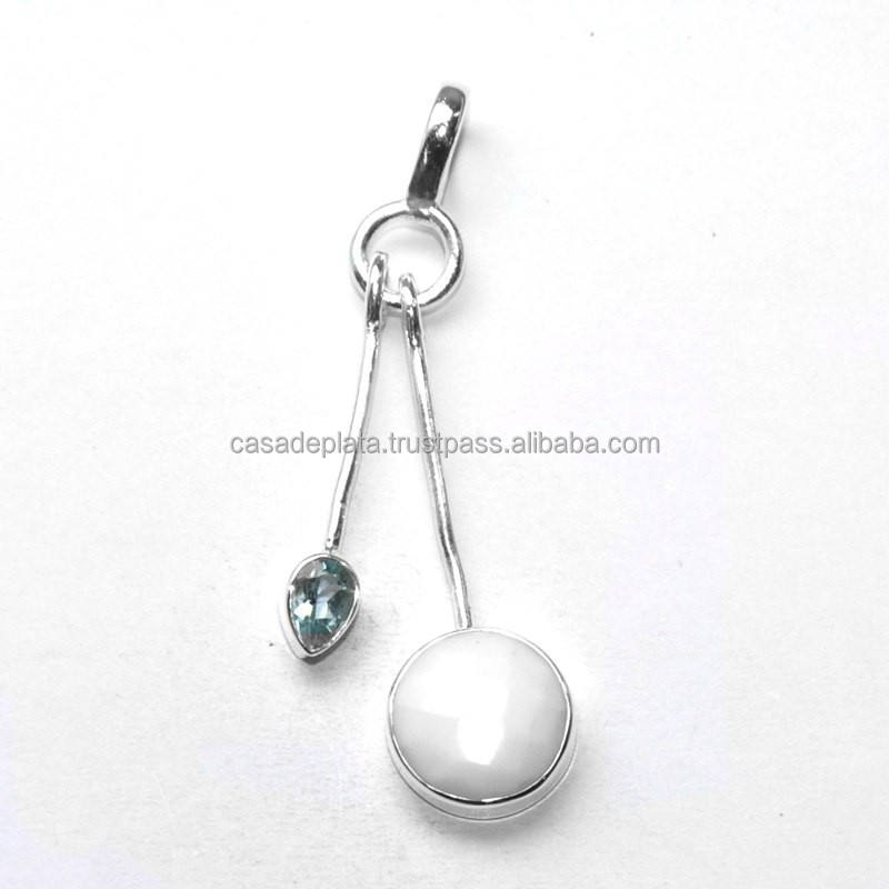 White Agate Blue Topaz Gemstone 925 Sterling Silver Pendant Jewelry Fashionable Pendant For Wedding Anniversary For Women.