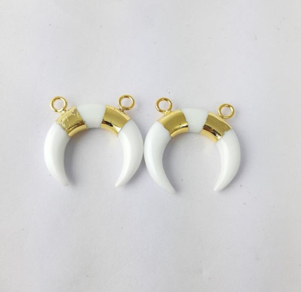 จี้ห้อยคอรูปพระจันทร์เสี้ยวชุบทองอัญมณีสีขาวแบบแตรคู่พร้อมห่วงสองอันสำหรับเด็ก