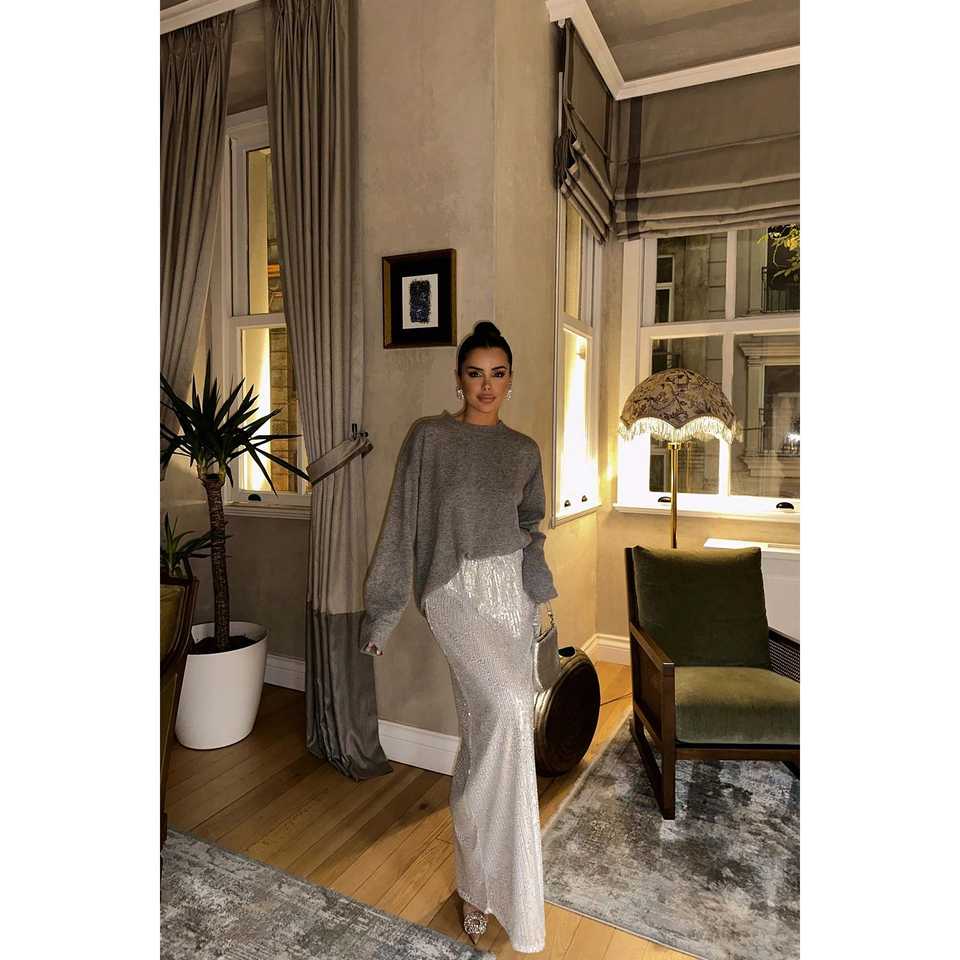 กระโปรงทรงดินสอสีขาว Alexa Denim ผ้าไหม แต่งเลื่อม ความยาวปานกลาง จับจีบ แต่งลาย กระโปรงสไตล์เวิร์คแวร์