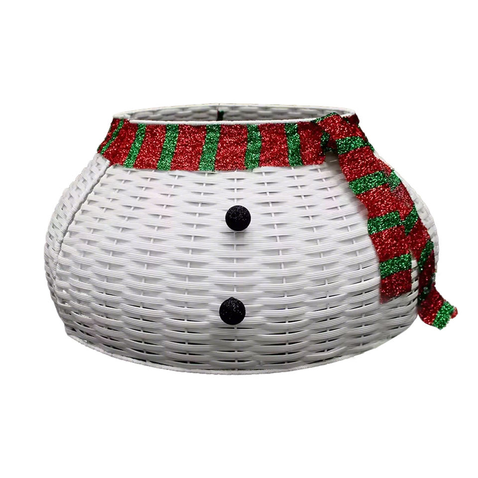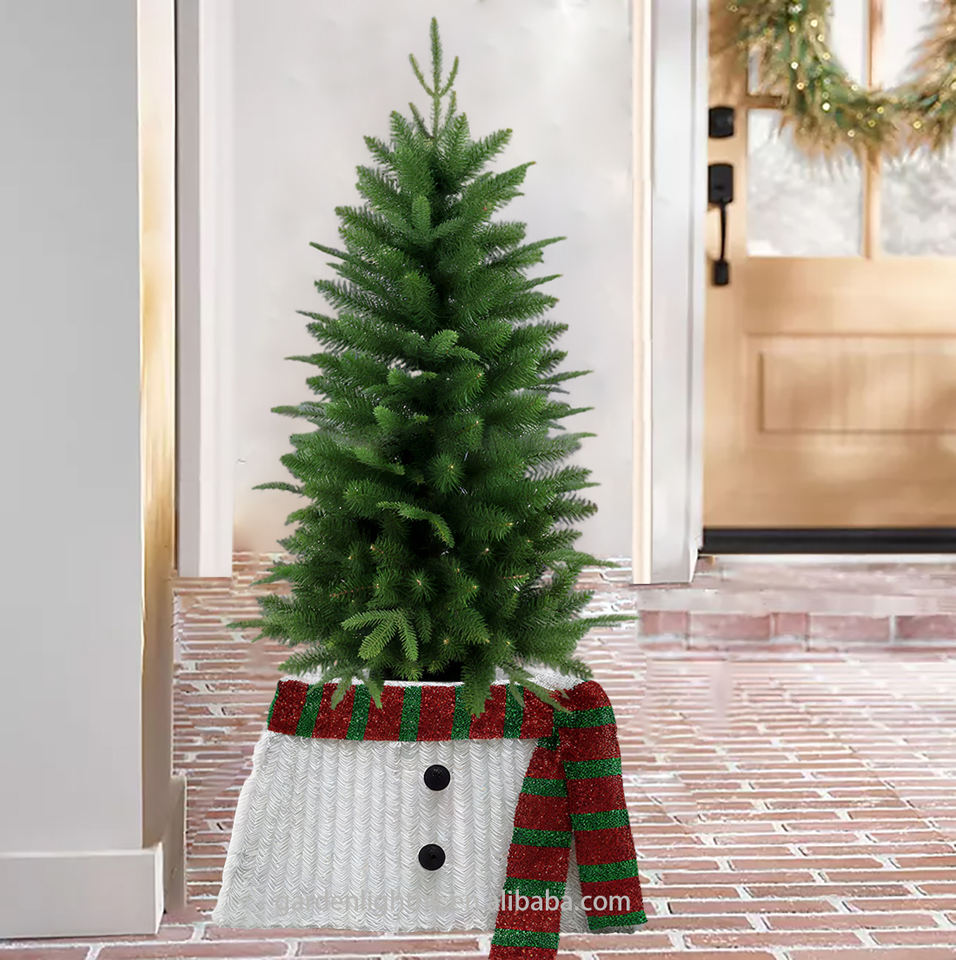 ที่ยืนต้นคริสต์มาสเทียมสีขาวพร้อมผ้าพันคอสีแดงกระโปรงตะกร้าปาร์ตี้วันหยุดอุปกรณ์ตกแต่งสำหรับคริสต์มาสที่บ้าน