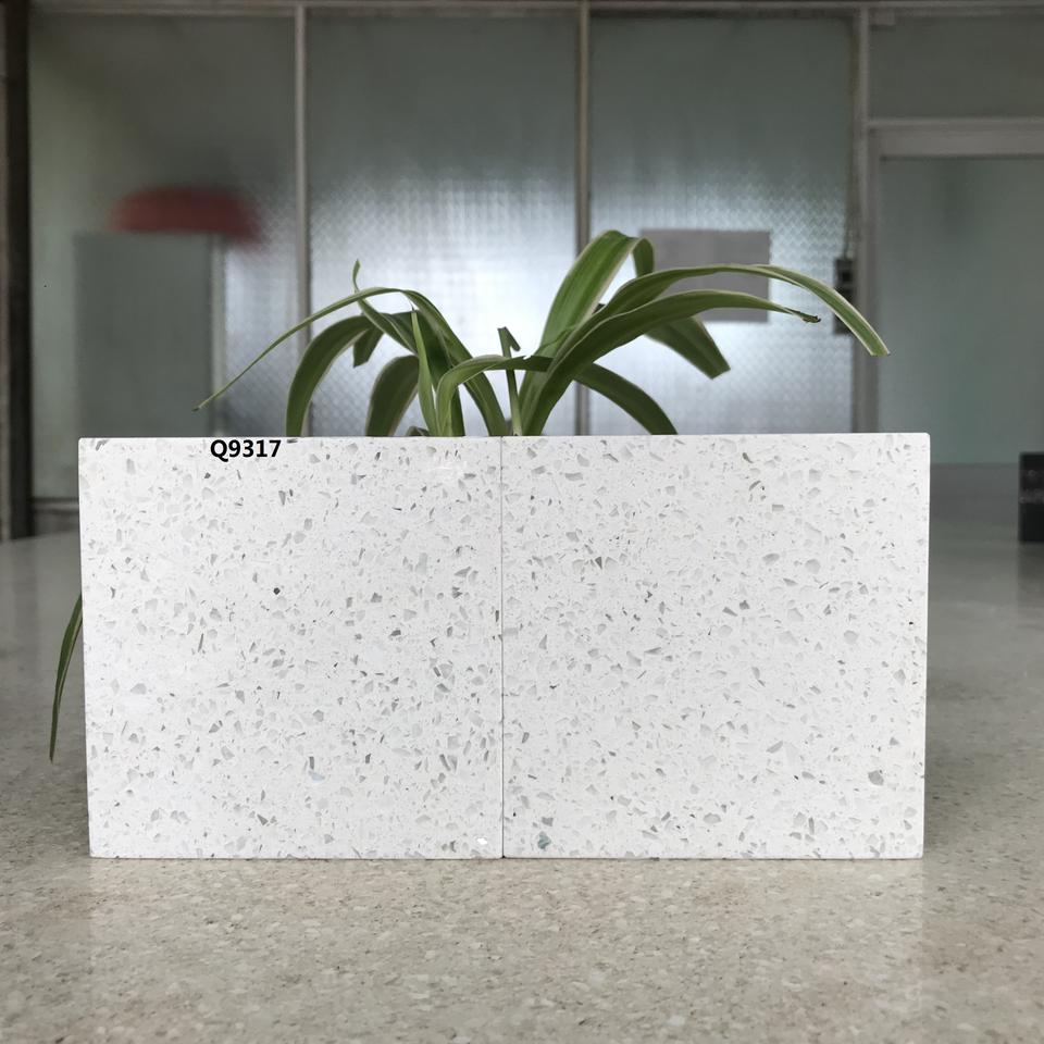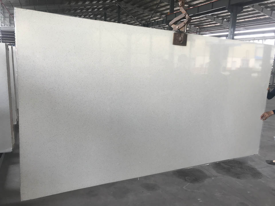 แผ่นหินเทียมสีขาวราคาควอตซ์ท็อปเคาน์เตอร์พร้อมเม็ดเล็ก