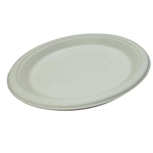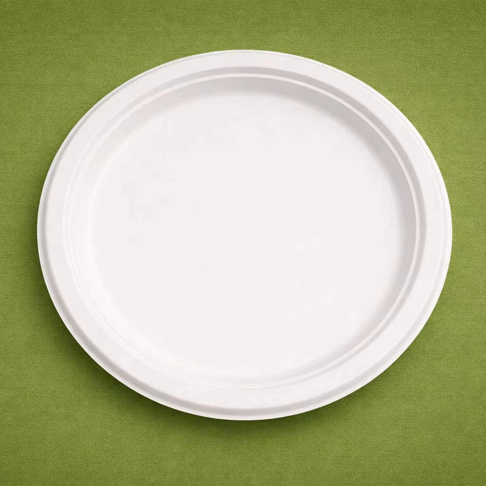 จานแบกาสสีขาวขนาด 10 นิ้ว แบบใช้แล้วทิ้ง เป็นมิตรกับสิ่งแวดล้อม สำหรับร้านอาหาร คาเฟ่ งานจัดเลี้ยง งานปาร์ตี้ และบรรจุภัณฑ์อาหาร