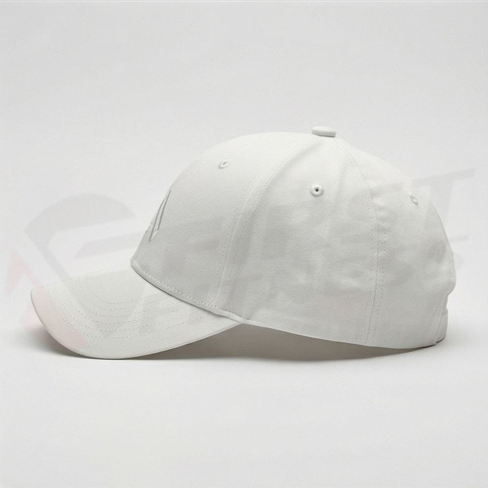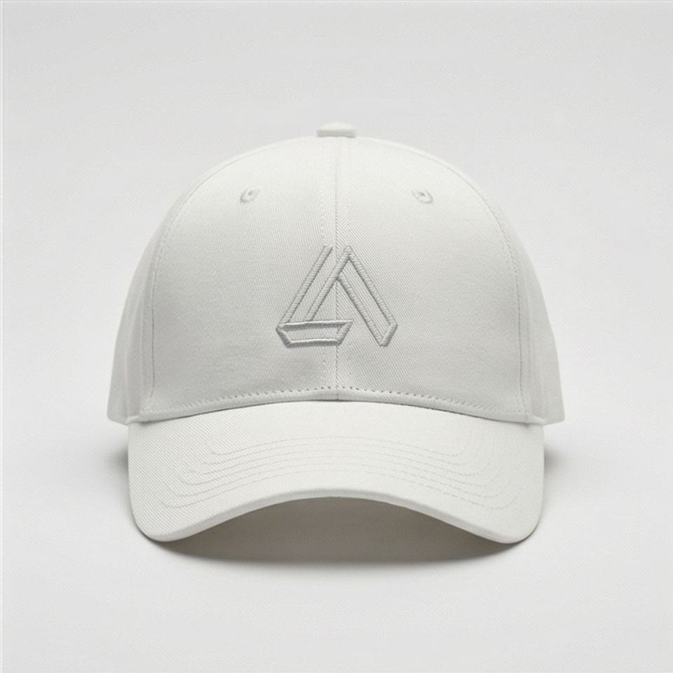 หมวกเบสบอลสีขาว ปักลายสามเหลี่ยมเรขาคณิต ทรงเข้ารูป ป้องกันแสงแดด เหมาะสำหรับผู้ชาย สไตล์ฤดูร้อน วิ่งออกกำลังกาย