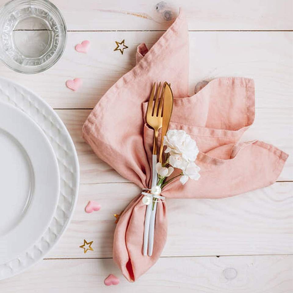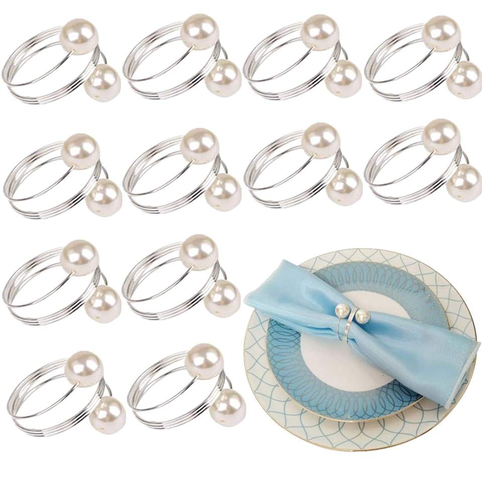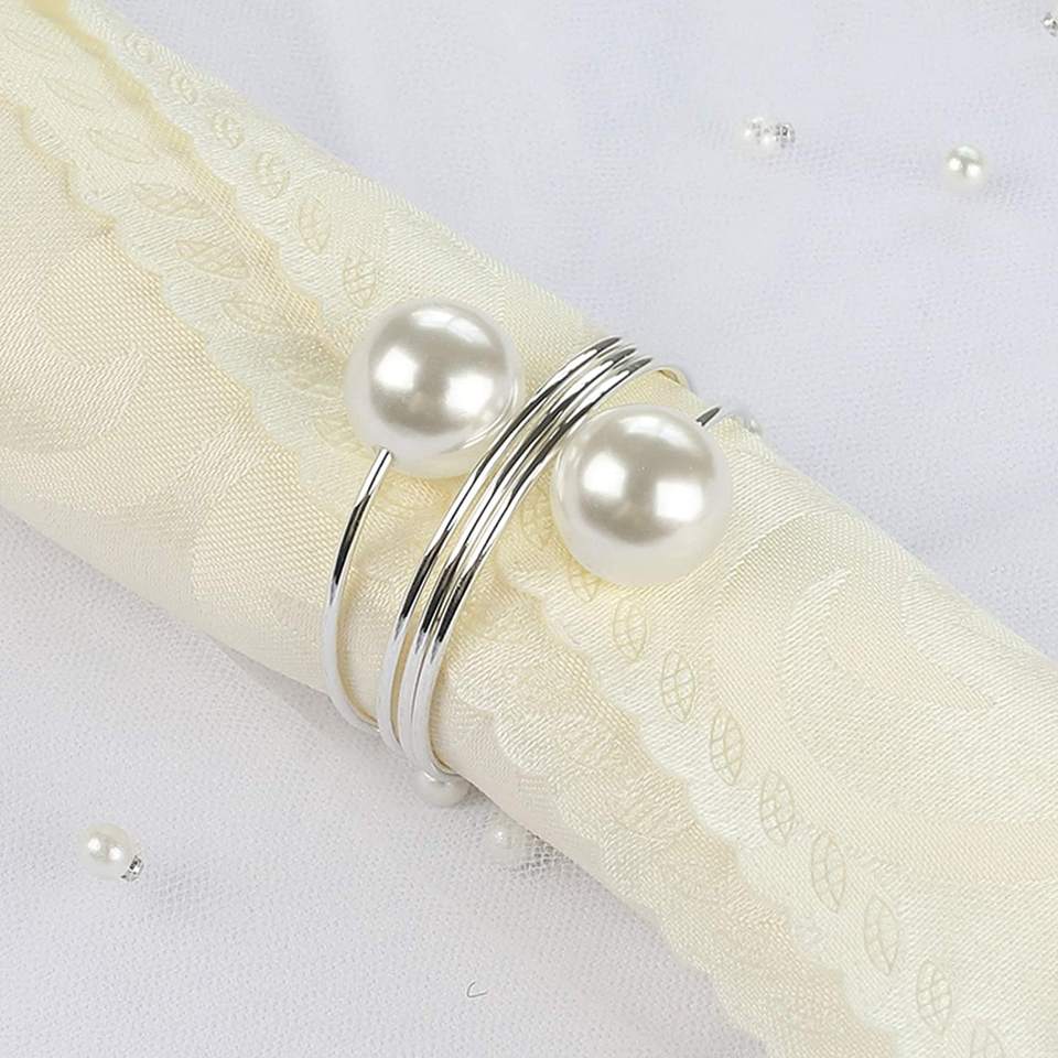 ห่วงรัดผ้าเช็ดปากลูกปัดสีขาวปรับได้ที่ใส่กระดาษทิชชู่ที่วางผ้าเช็ดปากโลหะสำหรับอาหารเย็นอุปกรณ์ตกแต่งงานอีเวนต์
