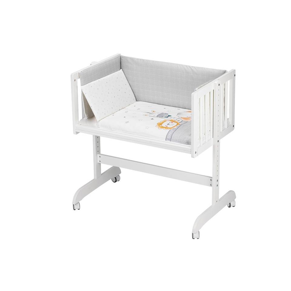 เตียงนอนเด็กแบบ Co-Sleeping ทำจากไม้บีชสีขาว พร้อมชุดเครื่องนอนและที่นอน รุ่น Animales สำหรับเด็กทารกและเด็กเล็ก