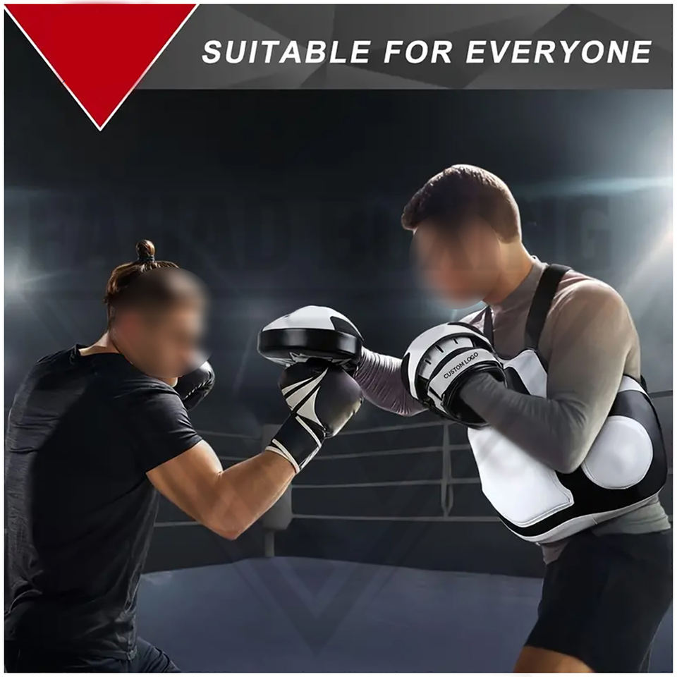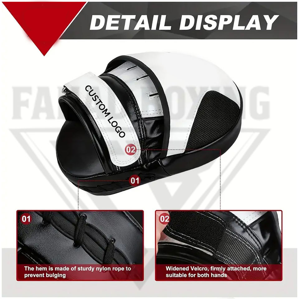 อุปกรณ์ฝึกซ้อมชกมวยสุดยอด รุ่นโค้ง สีขาวดำ แผ่นโฟกัสหนัง PU ทนทาน พร้อมผ้าพันมือแบบ Hook Loop ป้องกันการบาดเจ็บ