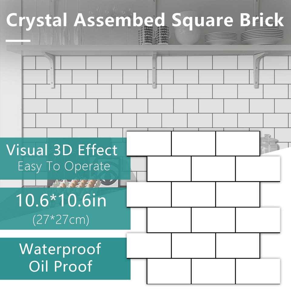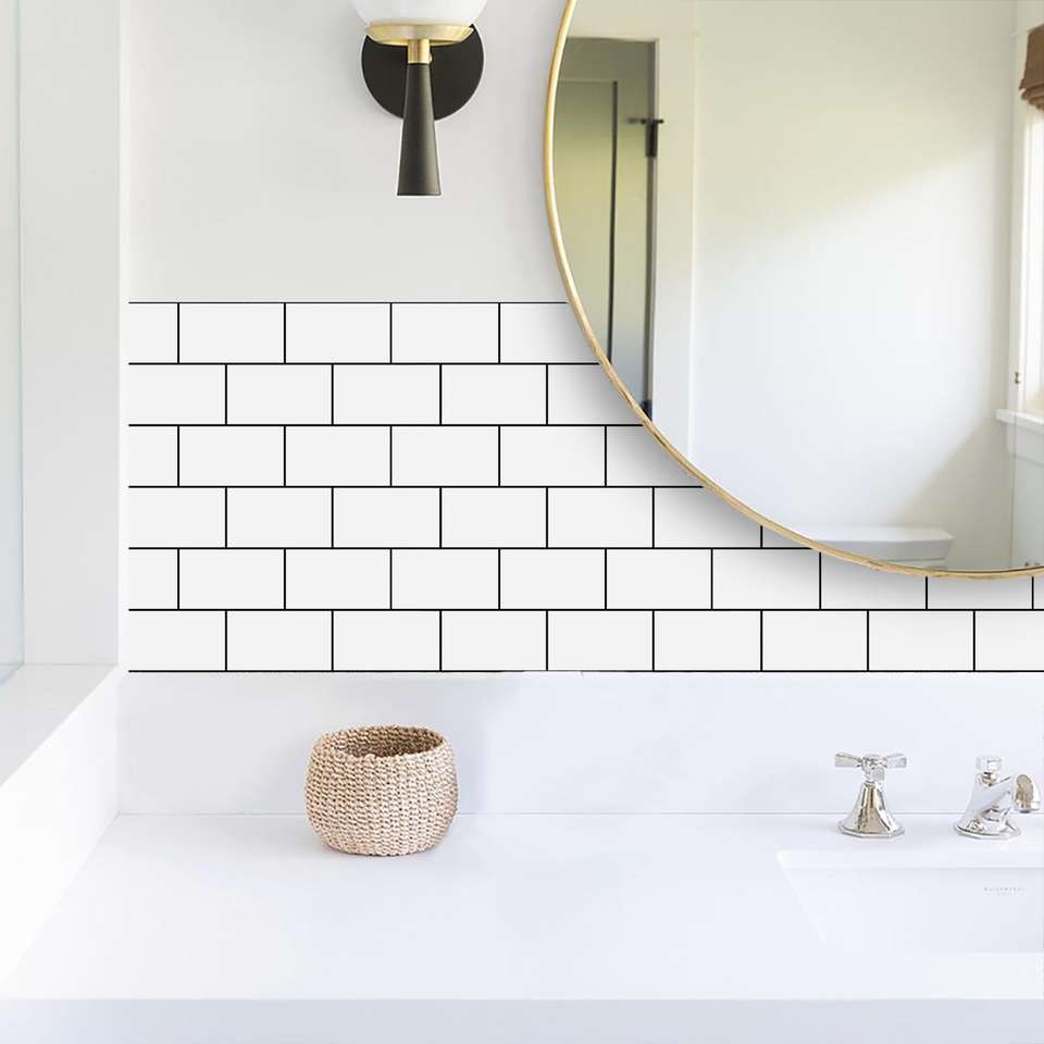 White Black Seam Peel Stick Kitchen Bathroom Backsplash Glossy PVC Water-Resistant Oil-Proof Self-Adhesive Decorative Stickers