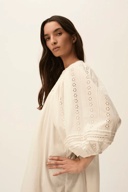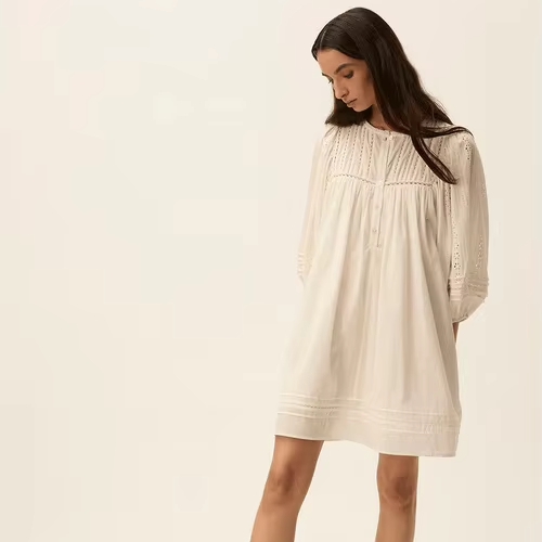 เดรสผ้าฝ้ายทรงเอไลน์สั้นสไตล์โบฮีเมียนสีขาว ปักลายด้วยเครื่องจักร เป็นมิตรต่อสิ่งแวดล้อม ซักได้ ระบายอากาศดี ทรงหลวม สวมใส่สบาย เหมาะสำหรับวันหยุดพักผ่อน