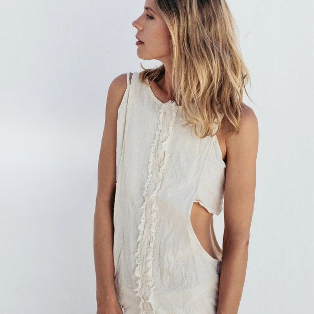 เสื้อท็อปโบฮีเมียนสีขาว ผ้าฝ้ายดิบ ตัดเย็บแบบเปิดข้าง เสื้อคลุมสไตล์โบโฮ ออร์แกนิค เสื้อฮิปปี้สำหรับงานเทศกาล โกอา อิบิซา ทูลัม ราคาขายส่ง