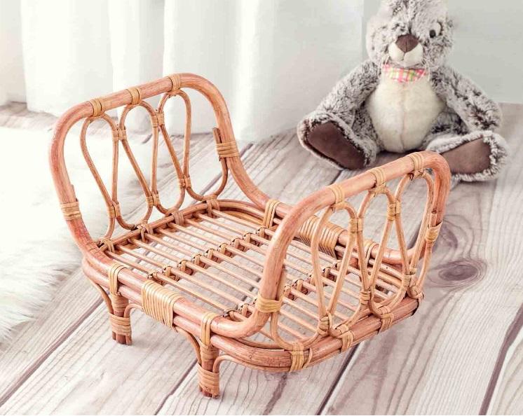 ตะกร้าหวายไม้ไผ่ Boho สีขาวสำหรับถ่ายภาพเด็ก