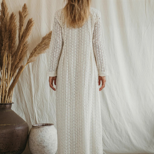 เดรสยาวโบโฮสีขาว เดรสเชิ้ตปักลายสีขาว ผ้าฝ้ายออร์แกนิค ติดกระดุม ชุดเดรสสำหรับงานปาร์ตี้ริมชายหาด ของขวัญสำหรับเธอ