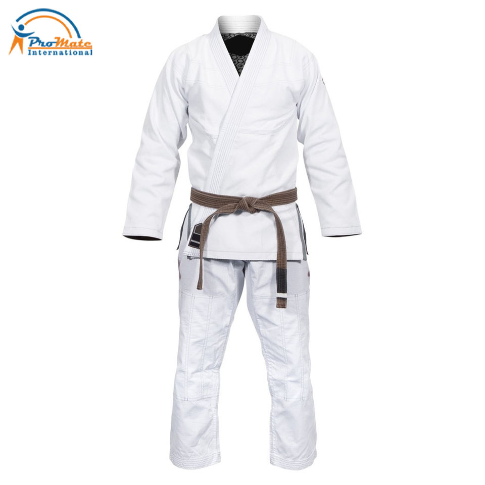 บราซิลสีขาว Jiu Jitsu Gi ที่มีคุณภาพสูงการออกแบบและแพทช์ที่กำหนดเองทำบราซิล Jiu Jitsu Kimonos ที่มีโลโก้ที่กำหนดเอง