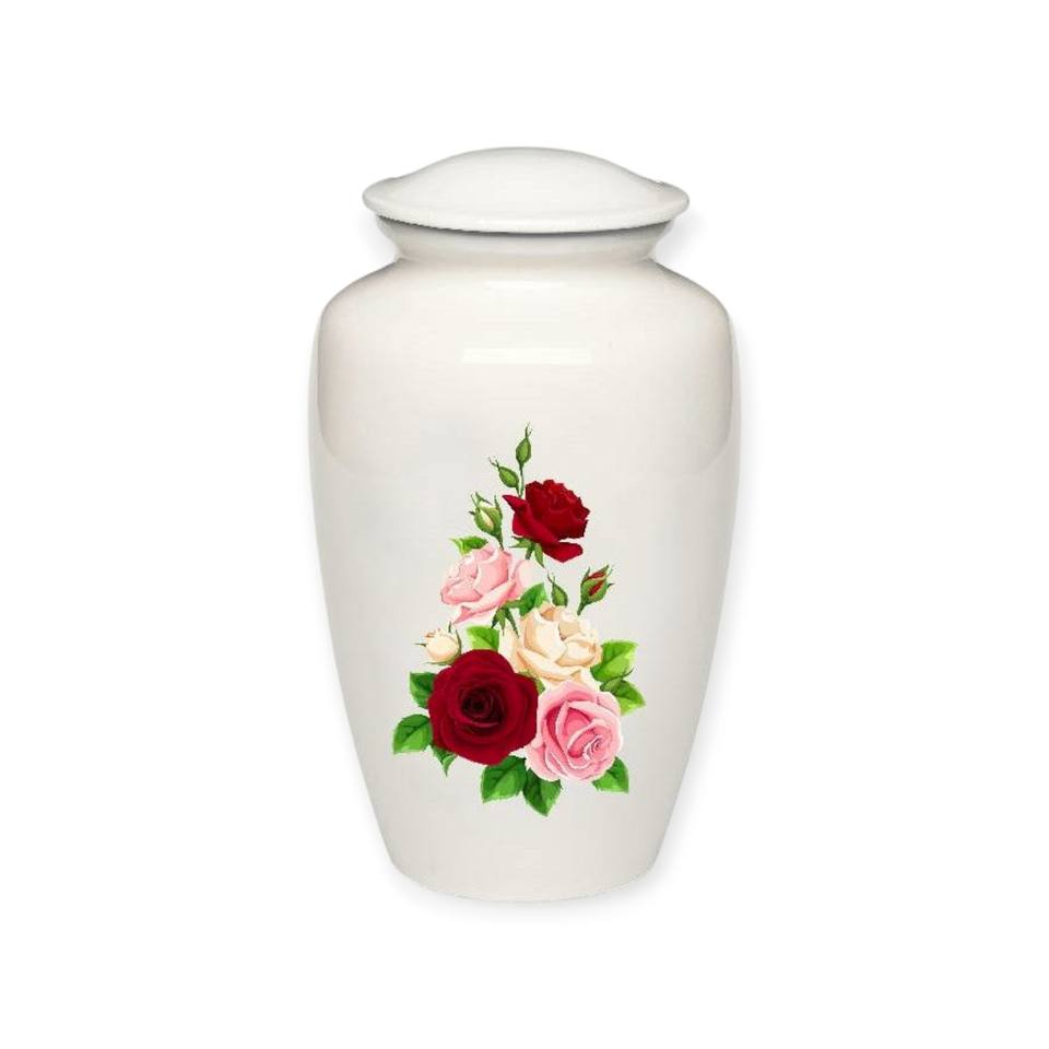 โกศบรรจุอัฐิรูปผีเสื้อสีขาวพร้อมลวดลายศิลปะหลากสีสันสำหรับบรรจุอัฐิผู้ใหญ่