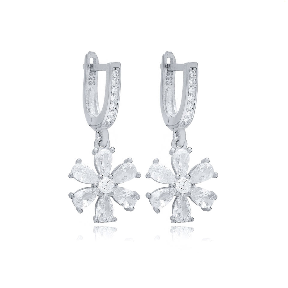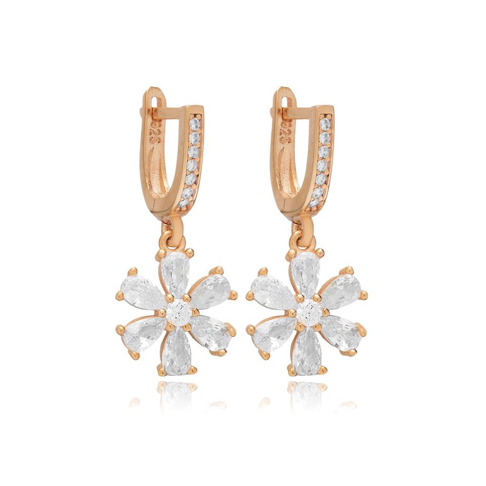 ต่างหูเพชร CZ สีขาวดีไซน์ดอกไม้สีเงินแบบตุรกี925สีเงินสเตอร์ลิงเครื่องประดับชั้นดี