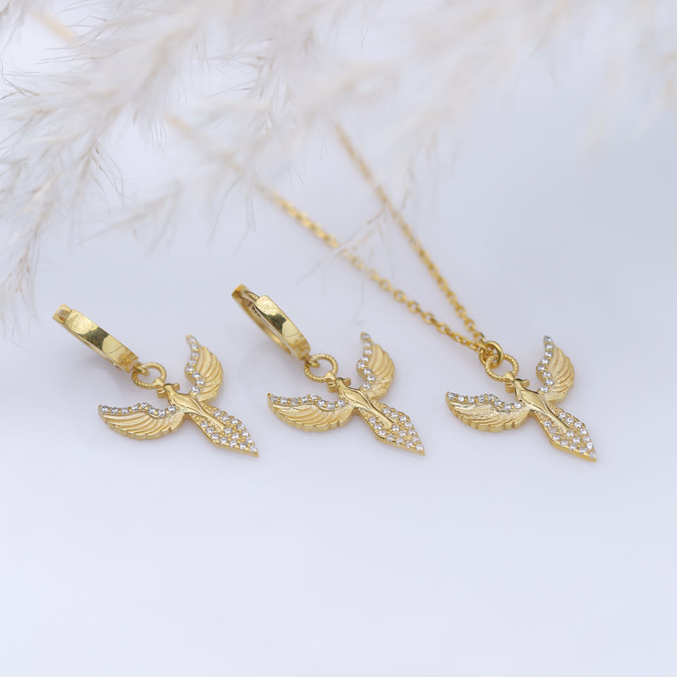 สร้อยคอจี้เพชรเทียมสีขาวดีไซน์รูปนกฟีนิกซ์เครื่องประดับอัญมณีชั้นดี