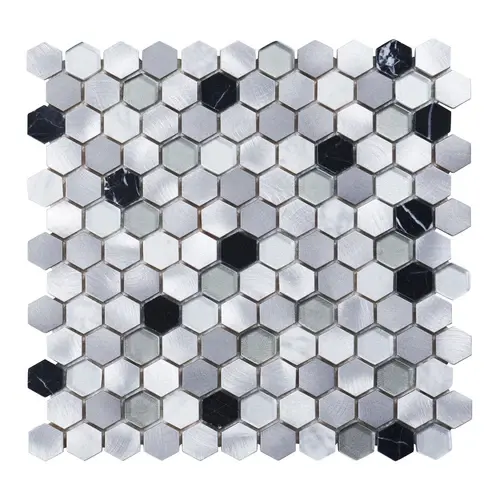 สีขาวแก้วสีเทาหินอ่อน Calacatta กับโลหะ1 "กระเบื้องโมเสคหกเหลี่ยมผนังห้องครัวเน้น