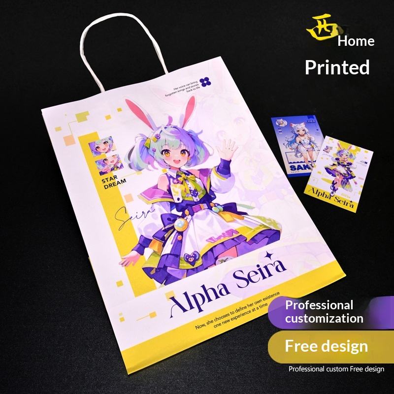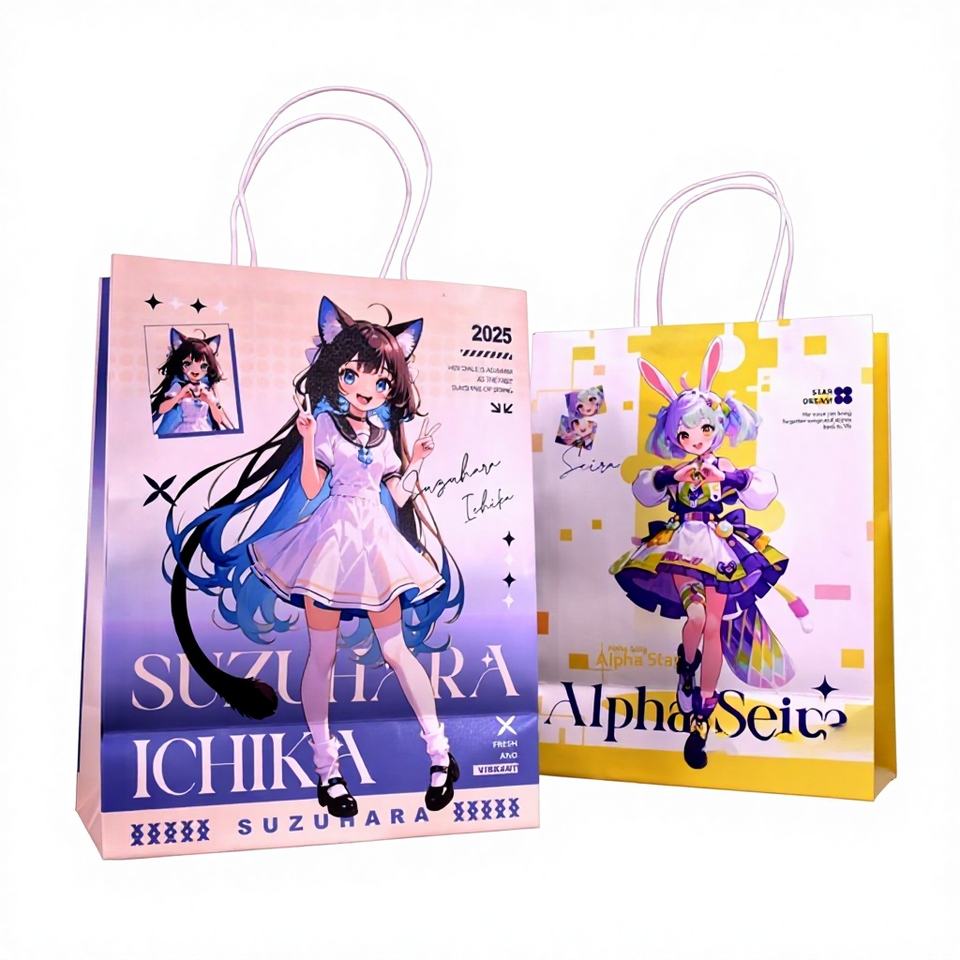 ถุงกระดาษสีขาวพิมพ์ลายการ์ตูนอนิเมะน่ารักแบบกำหนดเอง พร้อมหูหิ้วแบบยาว พิมพ์ออฟเซ็ต คุณภาพสูง