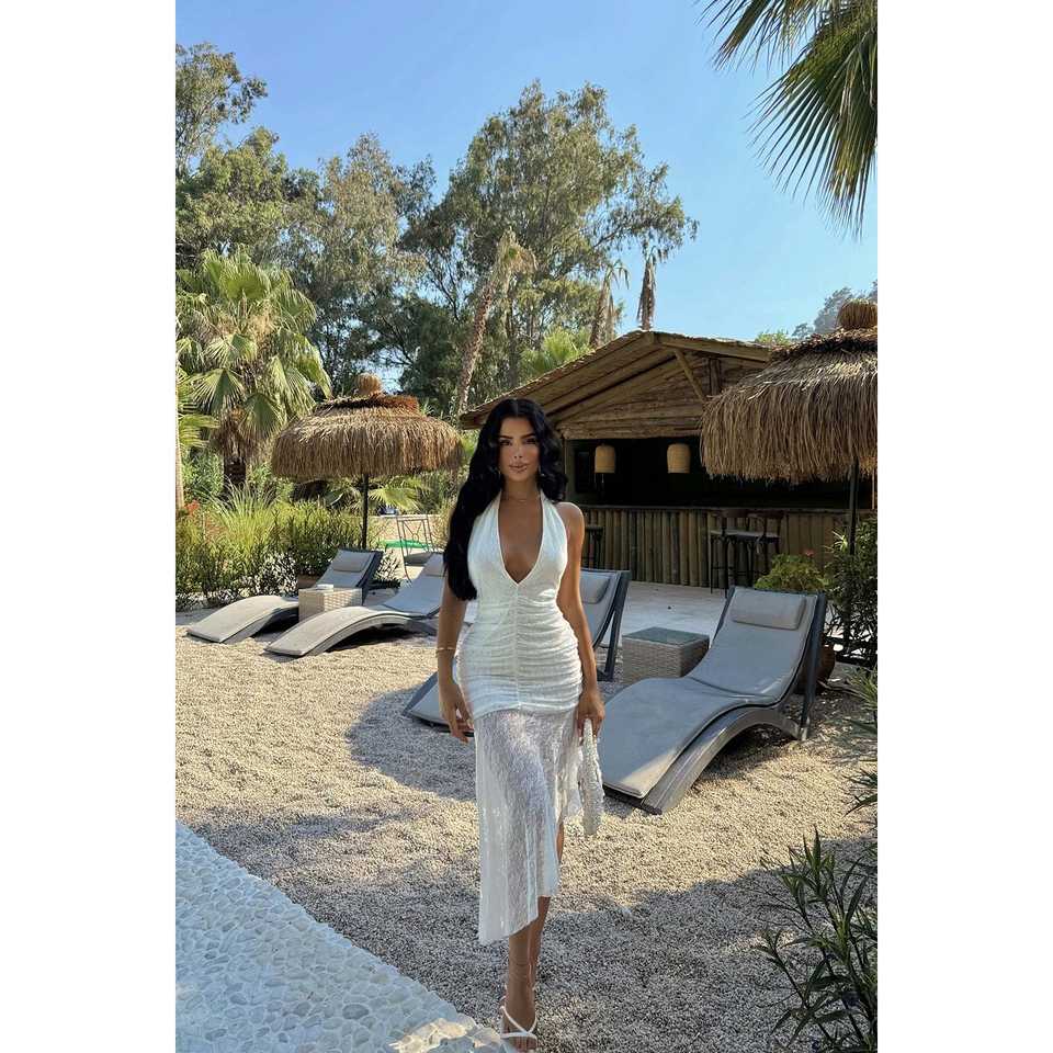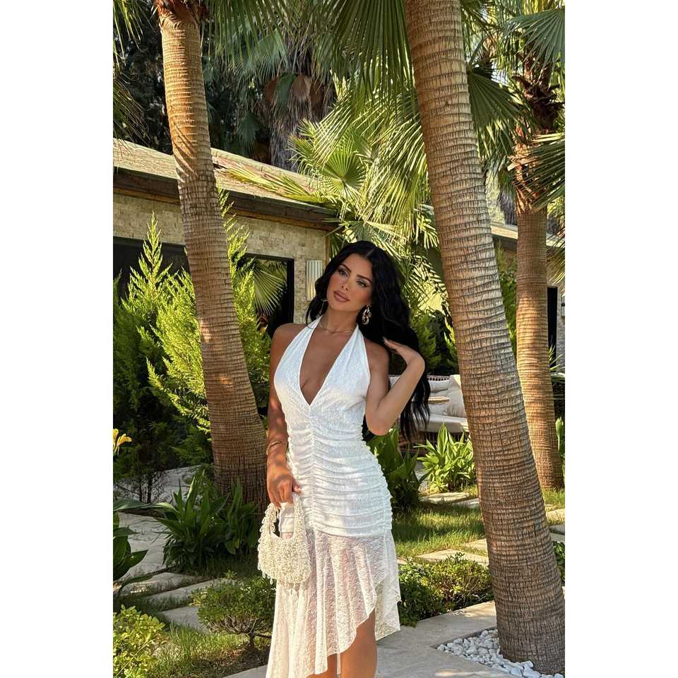 ชุดเดรสลำลองสีขาวสไตล์คาร์ลิน่า ดีไซน์หรูหรา คอเหลี่ยม ผ้าลูกไม้โปร่งแสง พร้อมซิป เหมาะสำหรับฤดูร้อน ผลิตตามแบบ ODM สำหรับงานหรูหรา ไซส์ XS