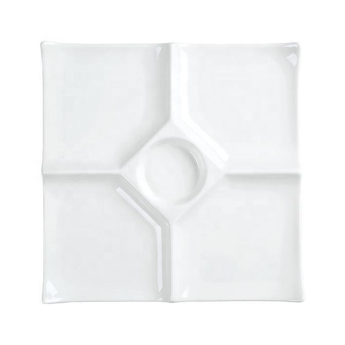 Product Name:White Ceramic Dumpling Plate with Soy Sauce Divider
