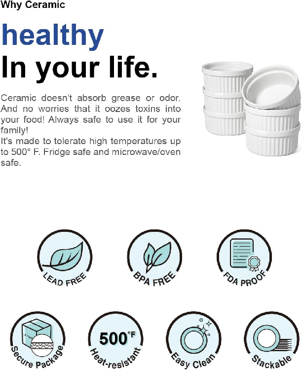 ถ้วยราเมกินเคลือบเซรามิกสีขาว ขนาด 8 ออนซ์ เป็นมิตรกับสิ่งแวดล้อม เหมาะสำหรับใส่ซอส ของหวาน พุดดิ้ง คัสตาร์ด ซูเฟล่ ใช้กับเตาอบได้