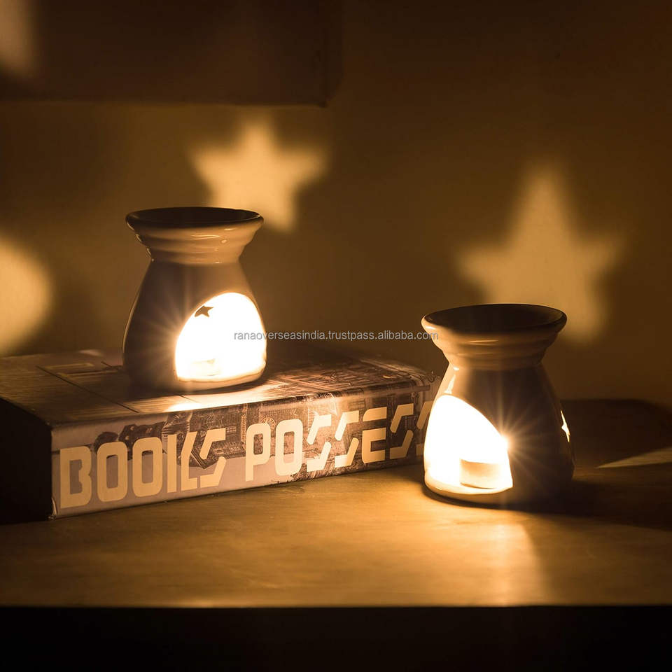 เตาเผาน้ำมันหอมระเหยเซรามิกสีขาว ที่วางเทียนทีไลท์ ของตกแต่งบ้าน กระจายกลิ่นหอม