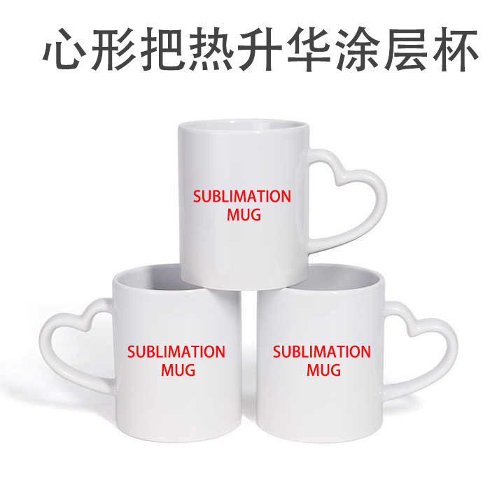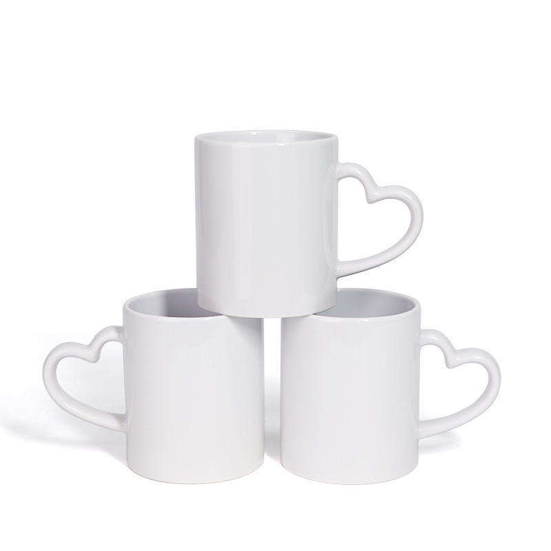 แก้วเซรามิกสีขาวพร้อมหูจับรูปหัวใจ เคลือบสีพื้นสำหรับพิมพ์ลายตามสั่ง