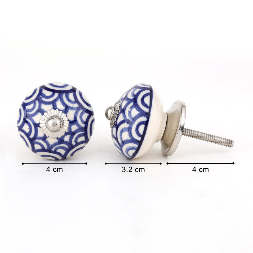 ลูกบิดลิ้นชักเซรามิกสีขาวทรงกลมมีแถบสีฟ้ามือจับตู้แบบชนบทโบราณสำหรับลิ้นชักตู้และตู้เก็บของ
