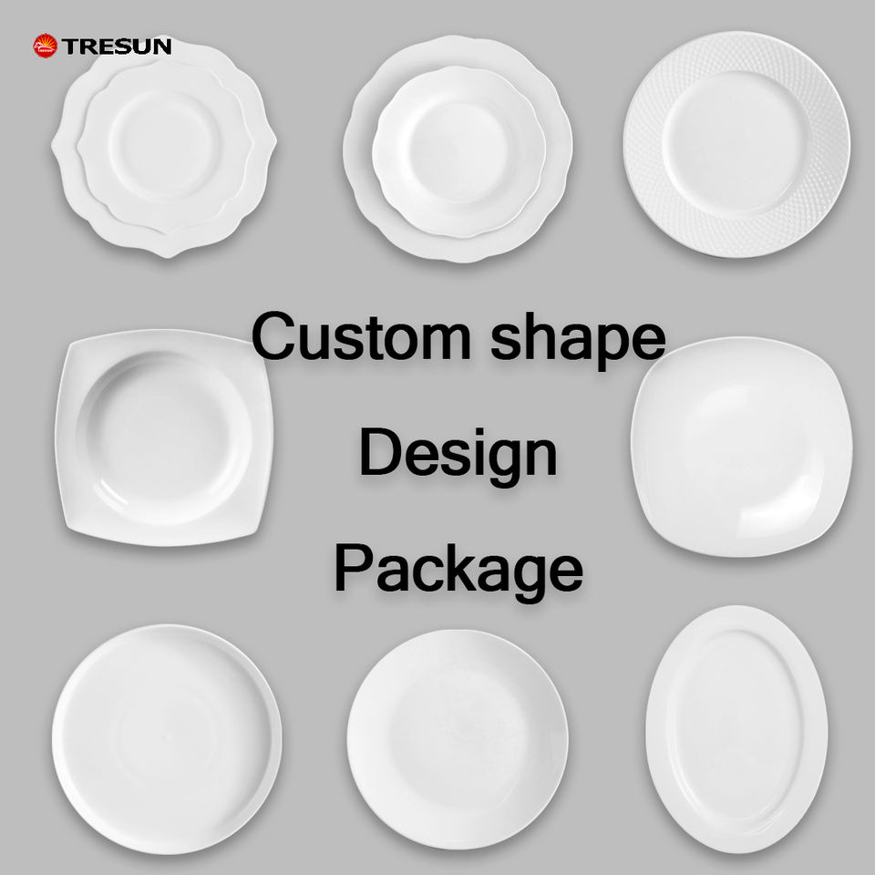 จานเซรามิกสีขาวสำหรับรับประทานอาหารจานรับประทานอาหารจานเซรามิกแบบกำหนดเองสำหรับร้านอาหารบริการเซรามิกบนโต๊ะอาหาร
