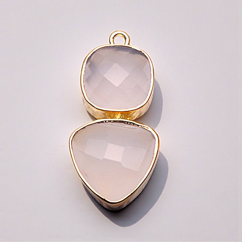 จี้เงินแท้ 925 ประดับพลอยขาว คาลเซโดนี ทรงคุชชั่น ขนาด 10 มม. สำหรับงาน DIY - จี้แบบมินิมอล
