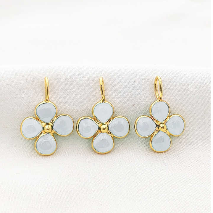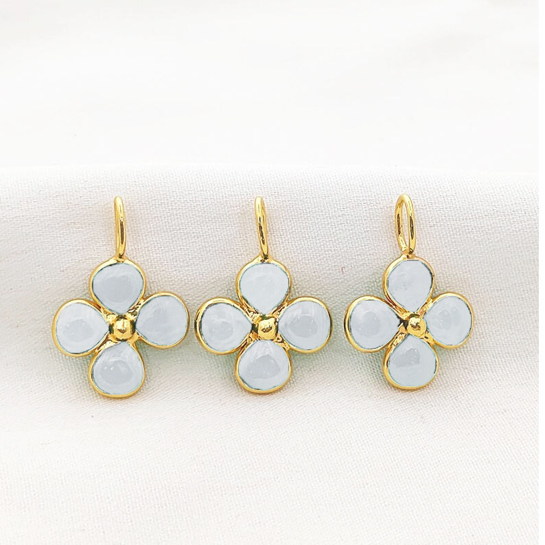 จี้รูปโคลเวอร์จากหินไวท์แคลซิโดนี ขนาด 5 มม. ขอบเรียบ งานแฮนด์เมด ขนาด 7x5 มม. ห่วงชุบทอง จี้หินไวท์แคลซิโดนี