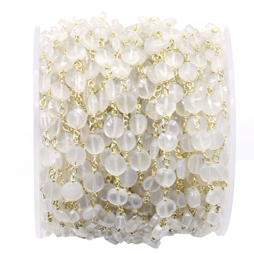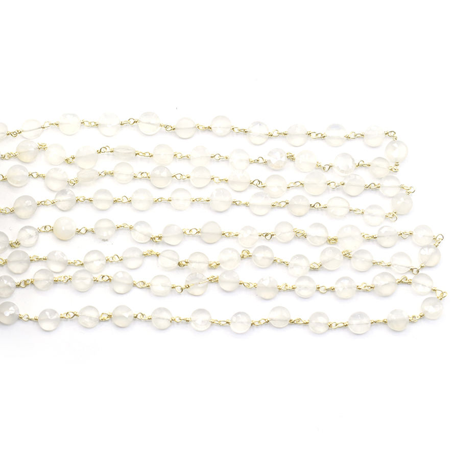 Product Name::White Chalcedony Sterling Silver Gold Plated Rosary Wire Wrap Chain