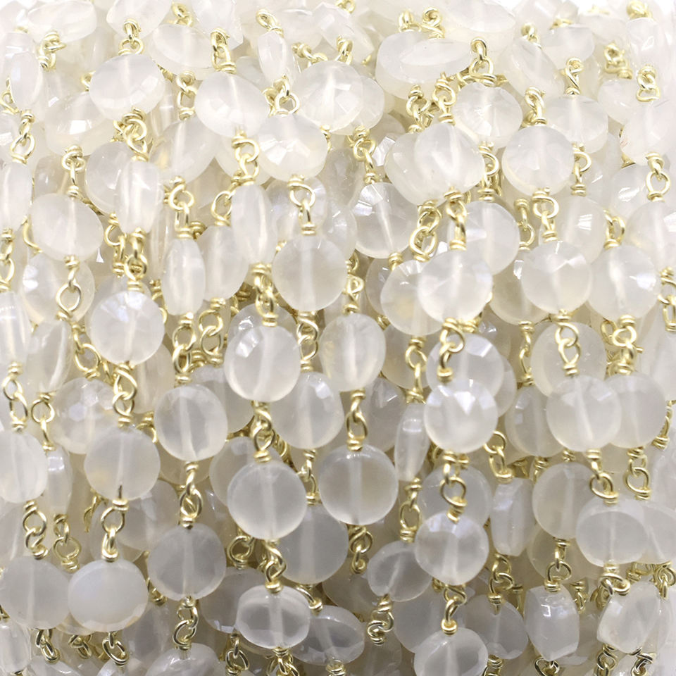 สีขาว Chalcedony เหรียญรูปร่างเงินสเตอร์ลิงชุบทองลูกประคำลวดห่อโซ่สำหรับการทำเครื่องประดับ