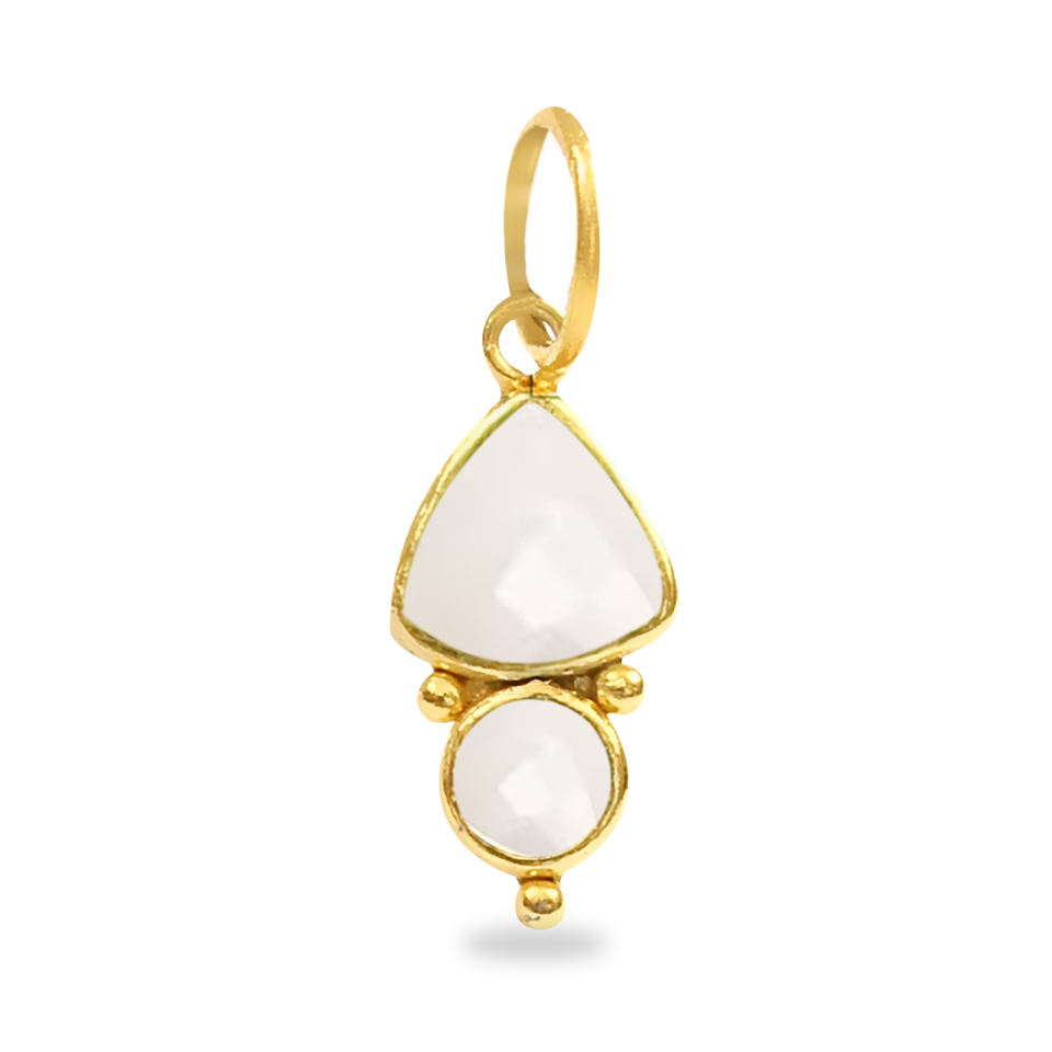 จี้ห้อยคอทรงสามเหลี่ยมและทรงกลมประดับด้วยพลอยไวท์แคลซิโดนี – จี้เครื่องประดับเงินดีไซน์เนอร์ขายส่ง