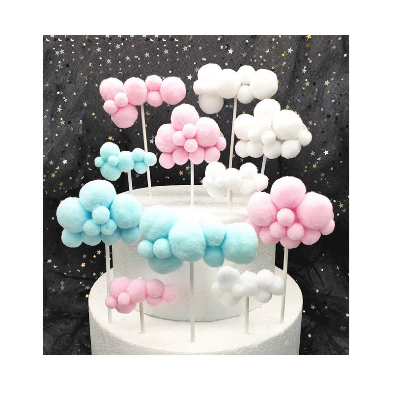 ท็อปเปอร์เค้ก3D เมฆสีขาวของตกแต่งหน้าเค้กสุขสันต์วันเกิดขนาดใหญ่และขนาดเล็ก