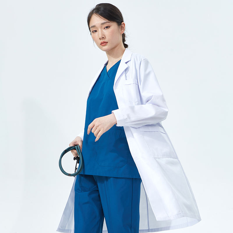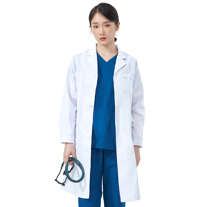 เสื้อกาวน์สีขาวสำหรับแพทย์ ห้องผ่าตัด ทันตแพทย์ เสื้อกาวน์สำหรับนักศึกษา โรงพยาบาลสัตว์ เสื้อกาวน์เด็ก ชุดระบายอากาศได้ดี เสื้อกาวน์คอปกสำหรับผู้ชาย