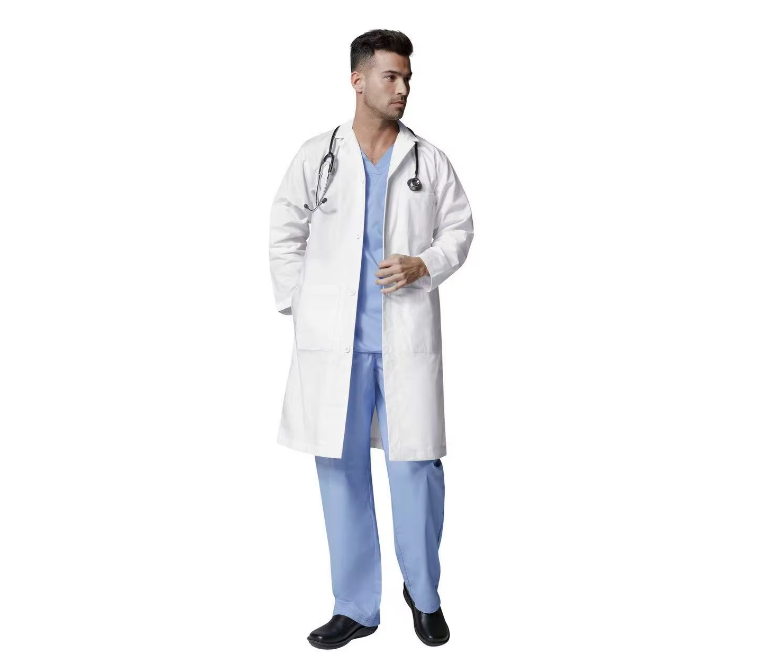 ชุดเครื่องแบบแพทย์แขนยาวผ้าคอตตอนโพลีเอสเตอร์ชุดยูนิฟอร์มทางการแพทย์สำหรับร้านขายยาในโรงพยาบาล