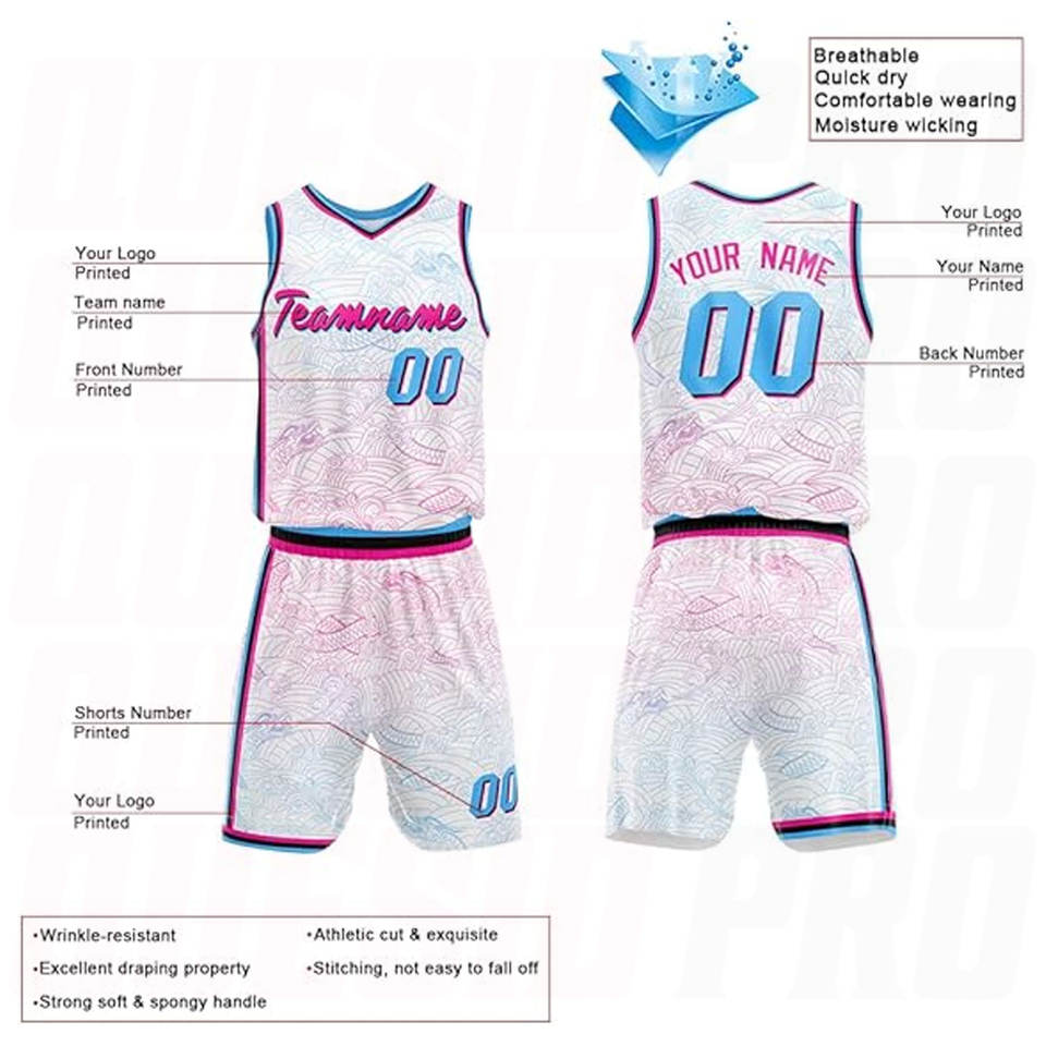 White Color Basketball Uniform Sets Professional Breathable Quick Dry Comfortable Printed Shirts with Sublimation Printing