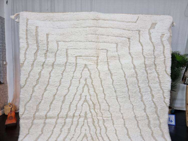 พรมถักลายสก็อตทำด้วยมือทำจากผ้าฝ้ายสีขาวพร้อมลายแอบสแตรกต์สำหรับตกแต่งบ้านห้องนั่งเล่นทำจาก100%