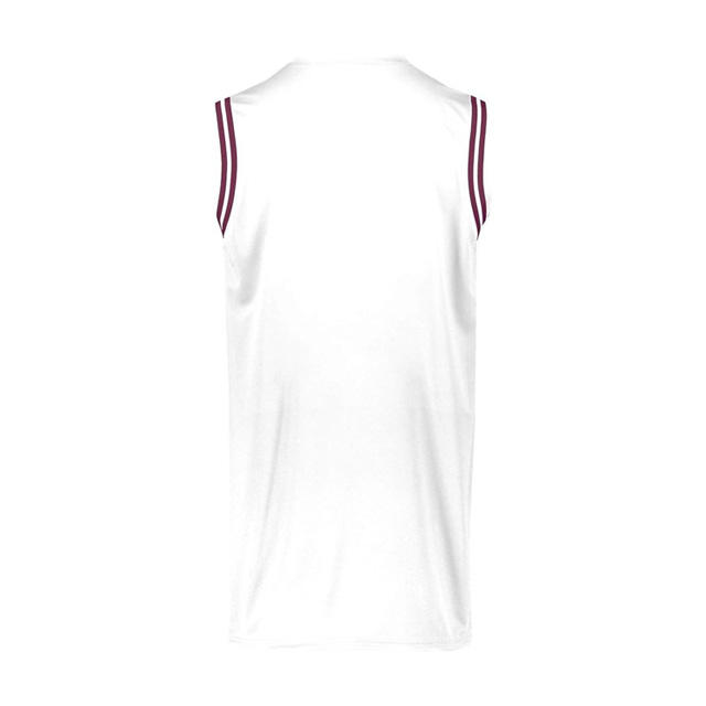 ชุดกีฬาแขนกุดสำหรับผู้ใหญ่เสื้อบาสเก็ตบอลผ้าโพลีเอสเตอร์แห้งเร็วแบบกำหนดเองสีขาว