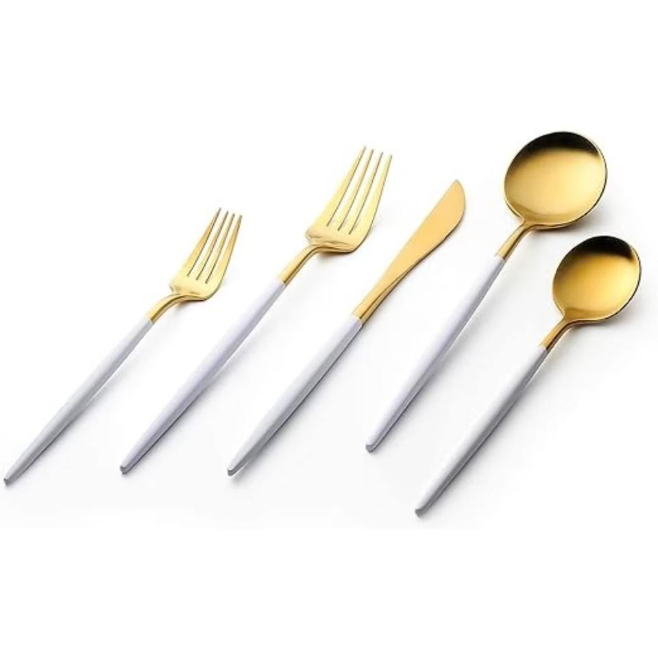 เครื่องใช้บนโต๊ะอาหารที่ใช้กับเครื่องล้างจานด้ามสีทองเครื่องใช้บนโต๊ะอาหารที่ปลอดภัยสำหรับบ้านร้านอาหารคาเฟ่ใช้ชุด5ชิ้น