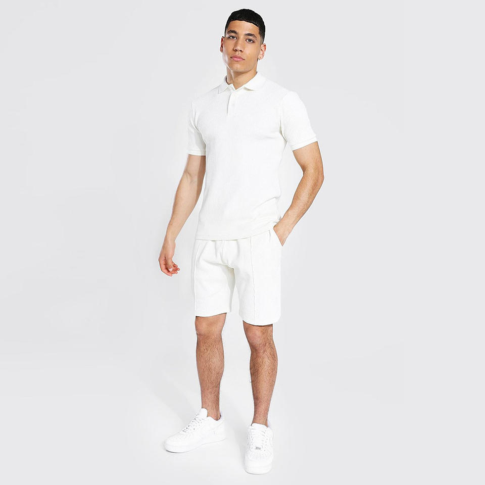 ชุดเสื้อโปโลและกางเกงขาสั้นผู้ชายสีขาว, 2025ฤดูร้อนสีพื้นลำลองแห้งเร็ว