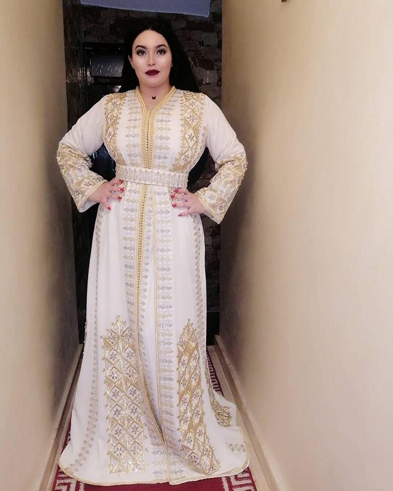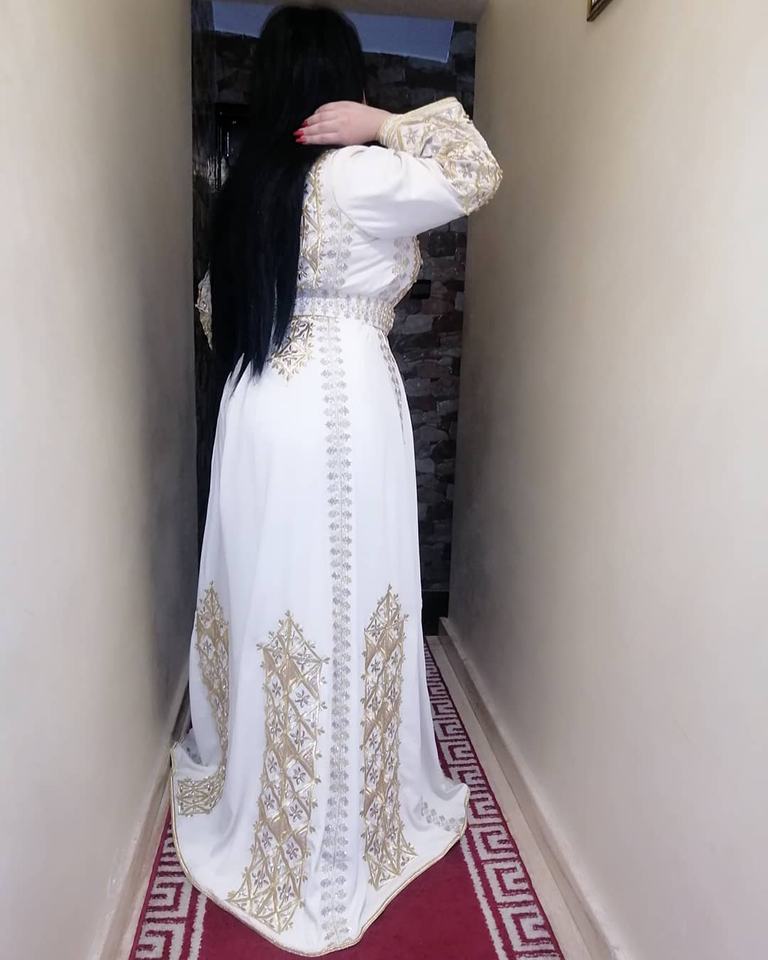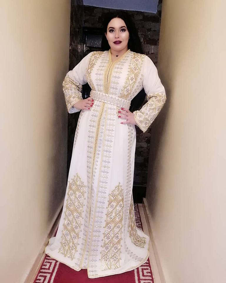 ชุดเดรสคาฟตันคาฟตันสีขาวทำด้วยมือปักลายสีทองทองป้องกันไฟฟ้าสถิตย์ขนาดพลัสไซส์ลำลองระบายอากาศได้ดีแบบดั้งเดิมมุสลิม