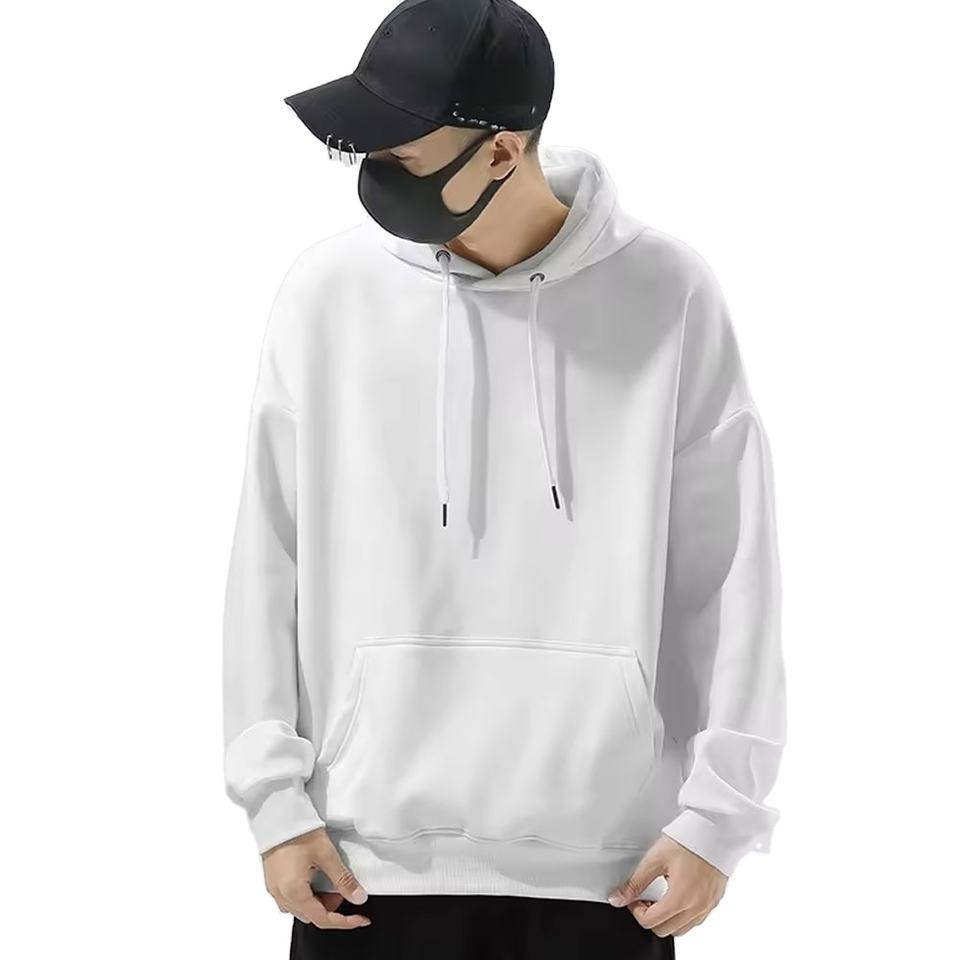 เสื้อฮู้ดดี้สีขาว ดีไซน์ใหม่ MOQ ต่ำ ขายส่ง แบบไหล่ตก สีพื้นเรียบ แบบสั่งทำพิเศษ สองชั้น หรูหรา