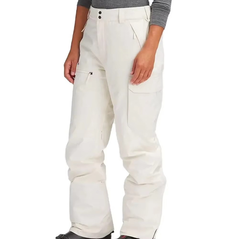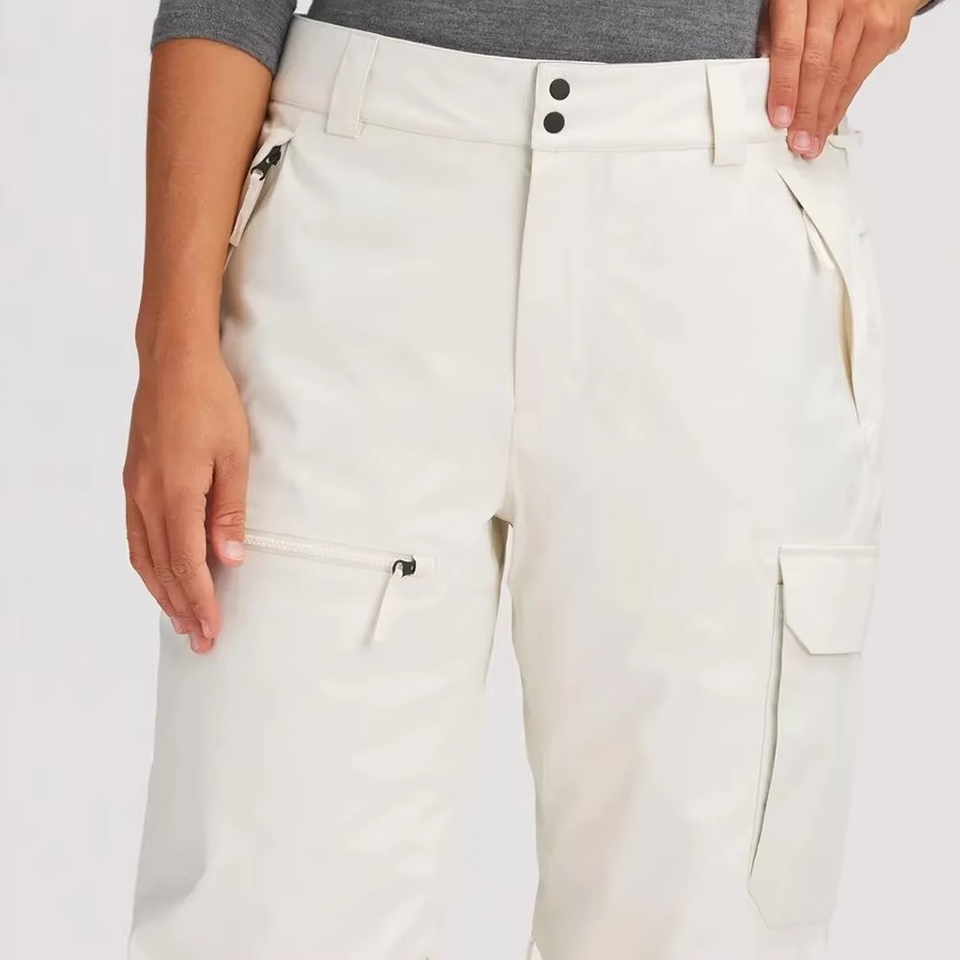 กางเกงสกีสีขาวขนาดพลัสไซส์กันลมกันน้ำระบายอากาศได้ดีกางเกงคาร์โก้สำหรับเล่นสโนว์บอร์ดกลางแจ้งเดินป่าแบบมีกระเป๋า