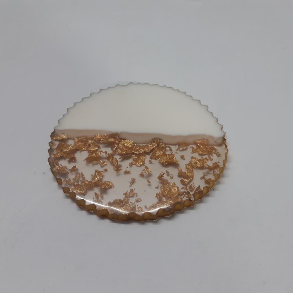 ถาดรองแก้วเรซินขอบทองสีขาวสำหรับใช้ในครัว