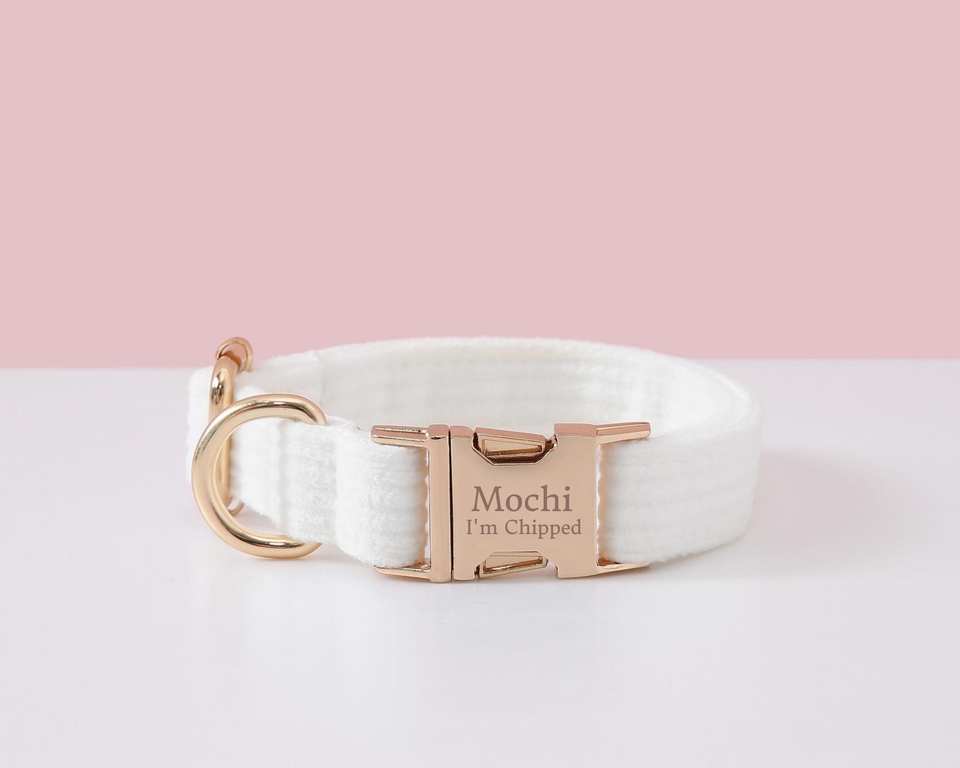 ผ้าลูกฟูกสีขาวและสายจูงคอปกแบบกำหนดเองปกดีไซน์เนอร์พร้อมชื่อปกหนาคอแต่งงานของขวัญสุนัข UK
