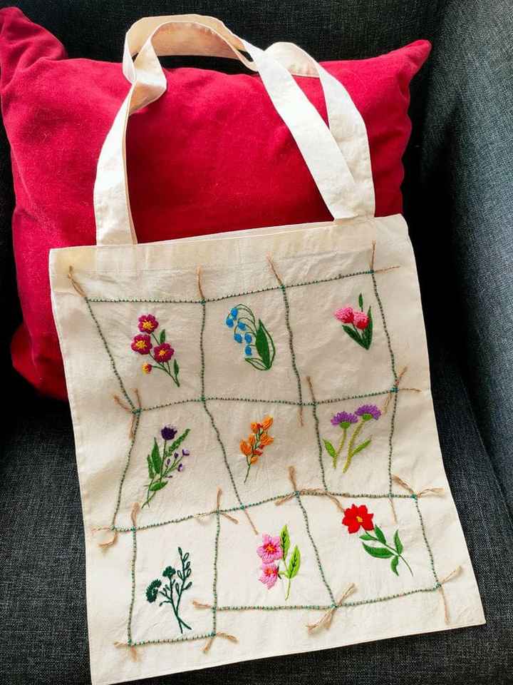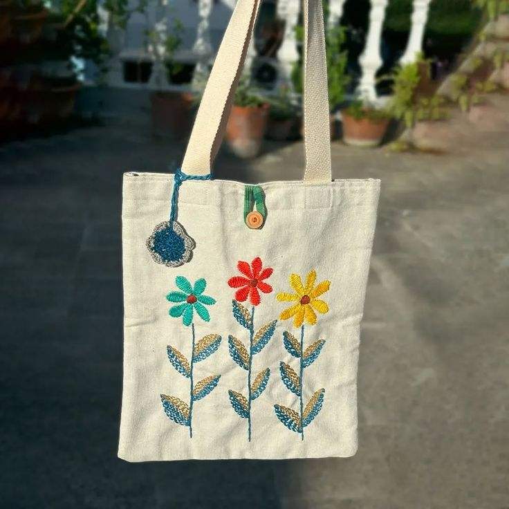 White Cotton Canvas Tote Handbag Beaded Seashell Starfish Embroidery Small Grocery Shopping Sack Beach Vacation Travel Bag Purse