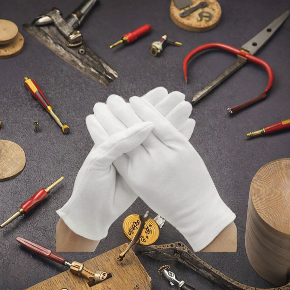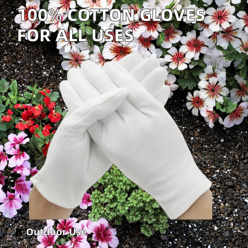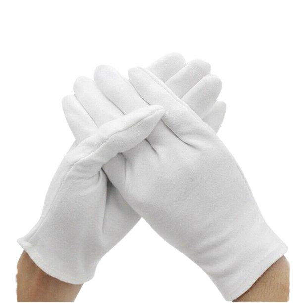 ถุงมือผ้าฝ้ายสีขาวสำหรับใช้ในชีวิตประจำวัน บำรุงผิว แก้ปัญหาผื่นแพ้ เหมาะสำหรับตรวจสอบเครื่องประดับ เงิน ของสะสม ชุดแต่งกาย ป้องกันมือแห้ง ใช้เสิร์ฟอาหาร
