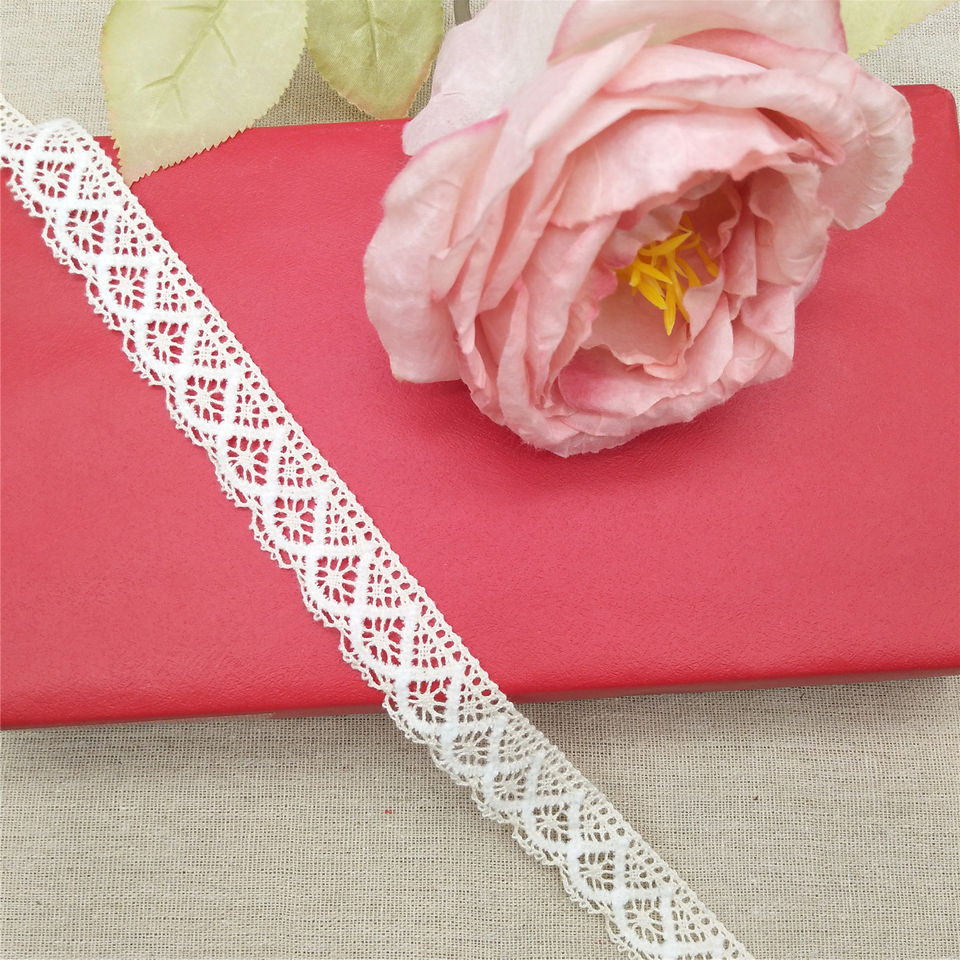 ผ้าถักแต่งระบายน้ำสีขาวละลายน้ำได้อุปกรณ์ตกแต่งสำหรับเสื้อผ้ากระเป๋าสิ่งทอในบ้าน